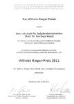 Am 25. Juli wurde Prof. Dr. Kai-Ingo Voigt der Wilhelm-Rieger-Preis feierlich übergeben. Der Lehrstuhl wurde nach 2009 bereits zum zweiten Mal für die hohe Qualität seiner Lehre ausgezeichnet. Zur Wahl des besten Lehrstuhls wurden im Sommersemester 2011 alle Studierenden des Fachbereichs durch den Studiendekan befragt. Das gesamte Lehrstuhlteam freut sich über die Auszeichnung und nimmt dies als weiteren Ansporn für die Zukunft!