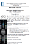 Der Lehrstuhl für Industrielles Management bietet im WS13/14 ein englischsprachiges Forschungsseminar zum Thema Geschäftsmodellinnovation in der Automobilbranche an. Das Seminar richtet sich an Masterstudierende. Ziel ist die Anfertigung einer empirischen Seminararbeit sowie die Präsentation der Ergebnisse. Interessenten finden mehr Informationen zum Seminar und zur Bewerbung auf der Studonseite des Lehrstuhls.
