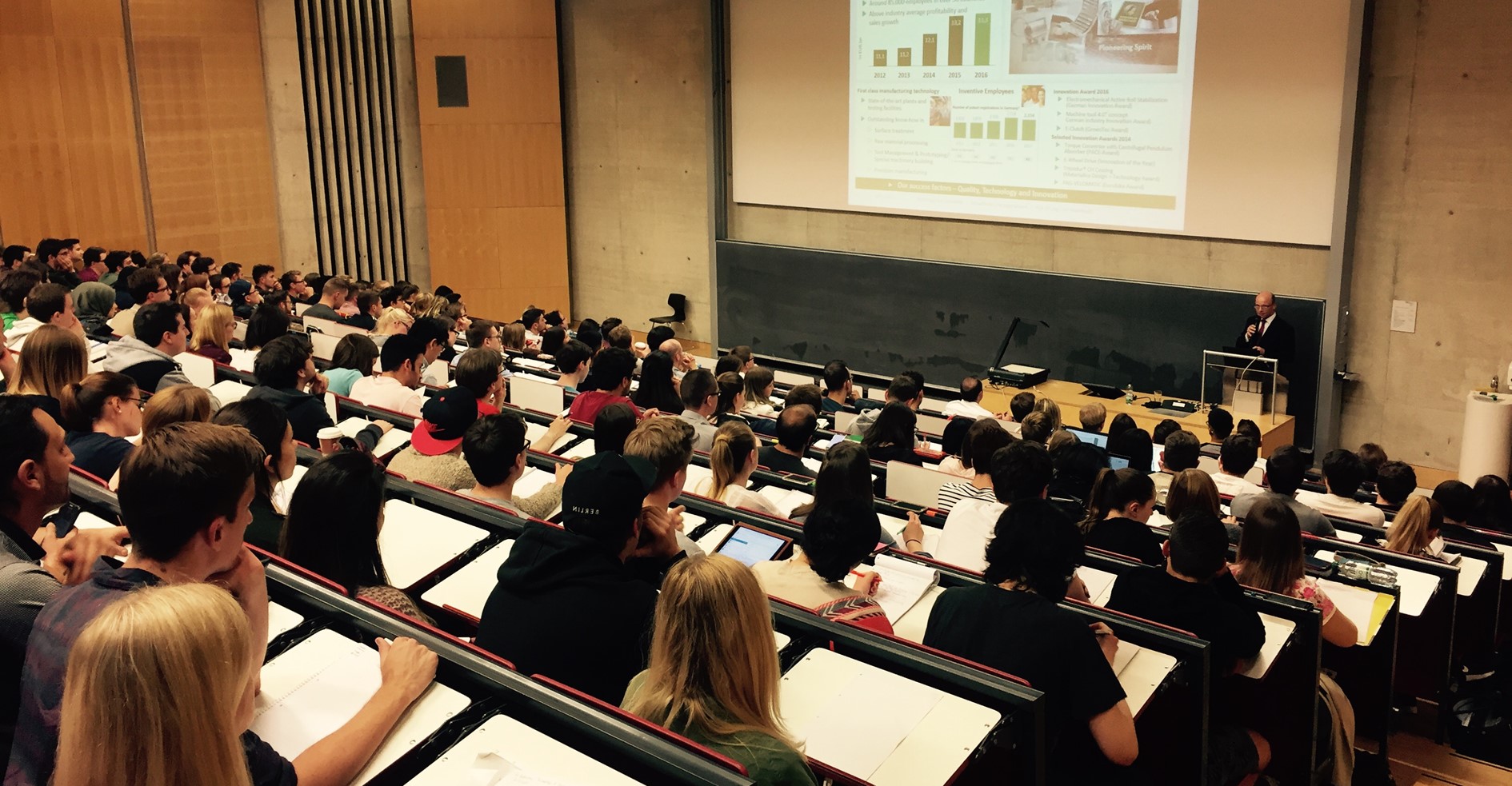 Following an invitation from Prof. Dr. Kai-Ingo Voigt, a great guest lecture was held by Prof. Dr. Tim Hosenfeldt at the School of Business and Economics. Prof. Hosenfeld is Senior Vice President at Schaeffler AG and is responsible for Schaeffler’s technology and innovation strategy, including innovation management and culture, new business models, central R&D, and external innovation networks. In his presentation, Prof. Hosenfeldt gave a comprehensive overview about current innovation initiatives and emphasized the important role of open innovation activities to ensure future success of an industry firm like Schaeffler. Prof. Voigt thanks Prof. Hosenfeldt for sharing his insights and, moreover, a special thanks goes to the active student audience, contributing to the lecture with many great questions.