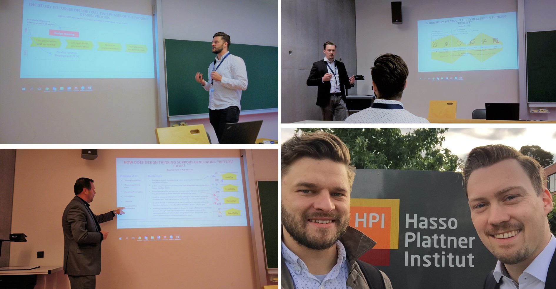 From September 11-12, Tobias Eismann and Martin Meinel represented the Chair of Industrial Management at the 18th International CINet Conference that was hosted by Prof. Dr. Katharina Hölzle and her team from University of Potsdam. Together with our co-author Sebastian Fixson from Babson College (Boston), we presented a paper on “The Impact of Design Thinking on Creative Idea Generation”. The paper that was also co-authored by Dr. Christian Baccarella and Prof. Dr. Kai-Ingo Voigt attracted much interest and led to fruitful discussions among the innovation community. After the conference, we were invited on a short tour through the School of Design Thinking (d.school) at Hasso-Plattner-Institut (HPI) in Potsdam. We give sincere thanks to the organizing team of the conference and look forward to next year’s conference in Dublin, Ireland.