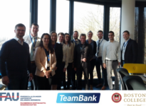 On January 10th, the International Project Seminar in cooperation with TeamBank and Boston College started under the supervision of Prof. Voigt, Felix Schaffelhofer (TeamBank, at the far right) and Daliborka Witschel (FAU). We were warmly welcomed and introduced to the project by Christian Polenz (at the far left), board member and COO of TeamBank. Three students each from FAU and Boston College will work on “Creating the bank account of the future”. After the kick-off in Nuremberg, the students will present their results of the joint project in a final presentation in April 2018 at Boston College. The chair wishes the students a successful cooperation!