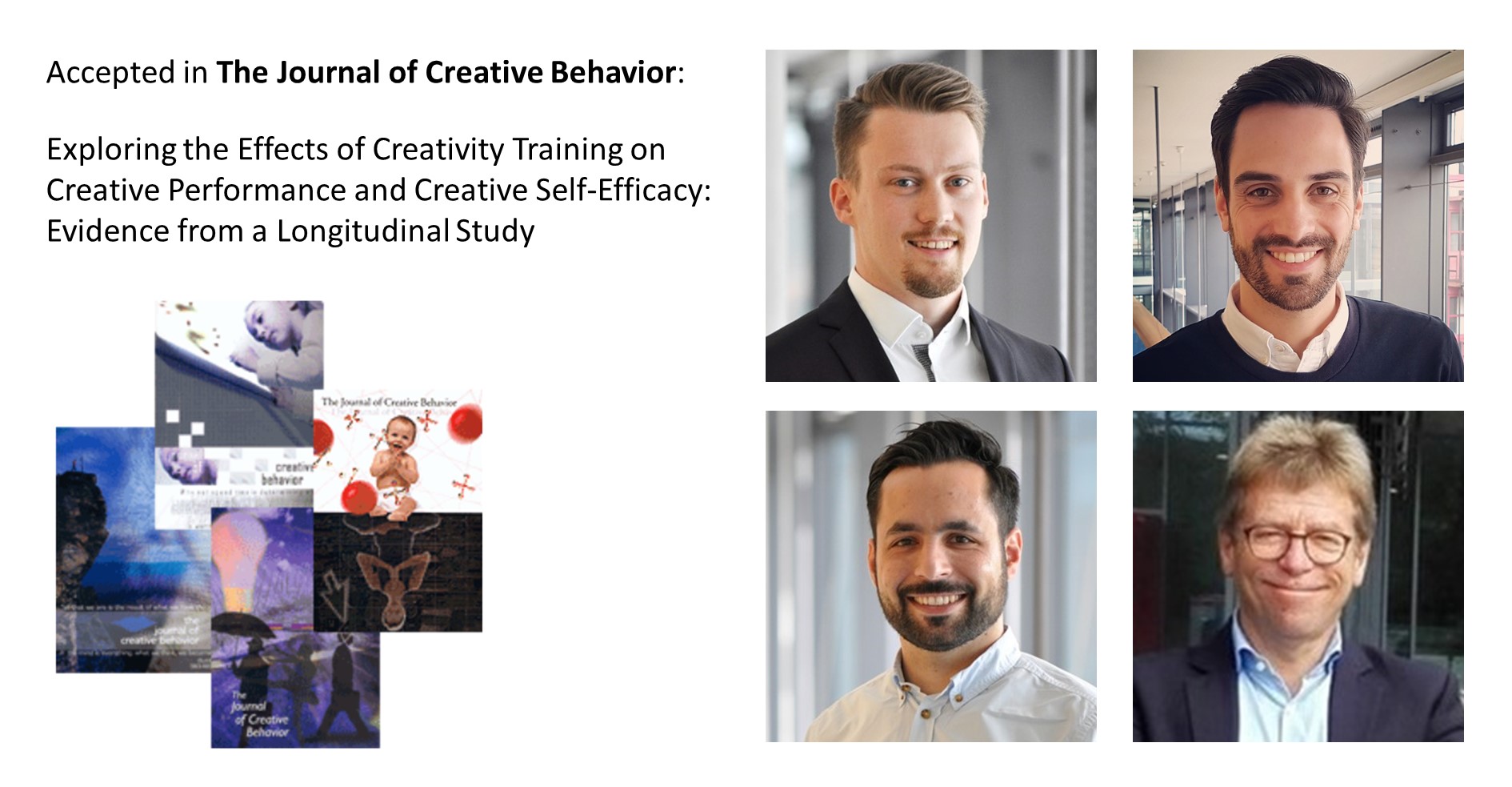 It is a pleasure to announce that our paper “Exploring the Effects of Creativity Training on Creative Performance and Creative Self-Efficacy: Evidence from a Longitudinal Study” has been accepted for publication in The Journal of Creative Behavior (JCB). Founded in 1967, JCB is the longest-standing journal devoted specifically to creativity research. Today, it is a primary outlet for the highest quality and most innovative work on creativity (Impact Factor: 1.9). In this paper, the authors Martin Meinel, Timm Wagner, Christian Baccarella, and Kai-Ingo Voigt explore the impact of creativity trainings on participants’ creative performance and creative self-efficacy. Based on a longitudinal research design, various implications are derived both for theory and practice.