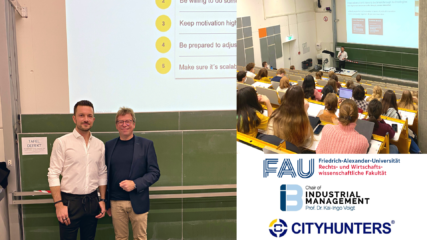 Today, Prof. Voigt and his team had the honor to welcome two successful founders of the global team-event company CityHunters: Philipp Steiner and Dr. Daniel Sekula. Both Philipp and Daniel graduated from WiSo and founded CityHunters when they were still students as part of our module “5-Euro-Business” in 2009. Since then, the CityHunters have come a long way and are now offering great team events by combining physical and digital experiences in more than 2.000 cities worldwide. One main aspect of the 90-minute guest lecture was of course the Covid-19 pandemic and how it influenced the business model by driving innovation inside the company. Being interrupted by a global pandemic in the middle of the growth stage certainly came with challenges but the CityHunters kept improving and adapted their business model brilliantly. The students conducted the subsequent Q&A session with much interest.