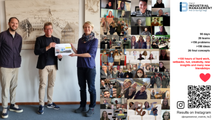 On March 29th, Prof. Dr. Kai-Ingo Voigt and Dr. Oscar Pakos handed over the results from the Organizational Creativity course to Ms. Iris Dieterich (Head of Department Administration). In the winter semester of 2021/2022, students in the course developed concepts for an improved campus experience (article and results can be viewed here).