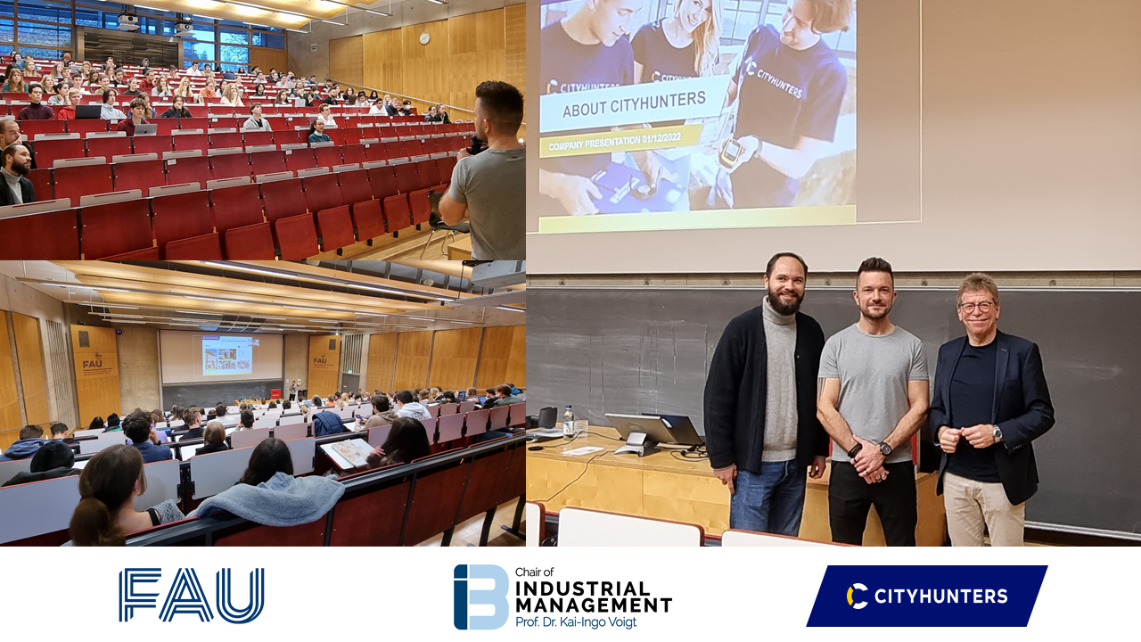 On December 1st, the Chair of Industrial Management welcomed Dr. Daniel Sekula and Philipp Steiner from the CityHunters in Nuremberg. CityHunters is a provider of team events, excursions and team strengthening events. Philipp and Daniel got to know each other during their studies and founded their company during their time at the Friedrich-Alexander University in 2009. In their 90-minute keynote they gave the approximately 80 students insights into their personal founding history. They talked about challenges and milestones in 13 years of entrepreneurship. In particular, they highlighted that the pandemic was challenging their company and business model. With the help of targeted decisions and process innovations, they were able to lead and successfully scale CityHunters through the pandemic. Finally, the students received valuable start-up tips and were able to ask Philipp and Daniel personal questions.