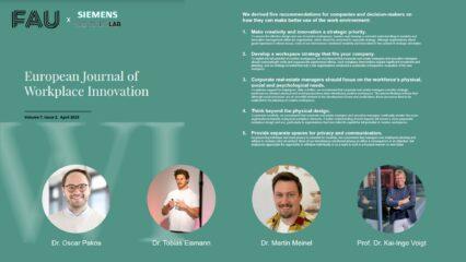 The authors of this paper, Dr. Oscar Pakos, Dr. Tobias Eismann, Dr. Martin Meinel (both Creativity Lab @Siemens), and Prof. Dr. Kai-Ingo Voigt, investigated the process of designing and implementing modern workspaces. However, designing, planning, and implementing such workspaces is highly complex and affects multiple organizational variables at the individual, team, and organizational levels.