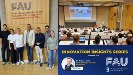 Once again, the Chair of Industrial Management kicked off this year’s Innovation Insights Series with a compelling first lecture on May 8th, delivered by Dr. Andreas Volek, Head of Strategic Innovation Management at Diehl.
