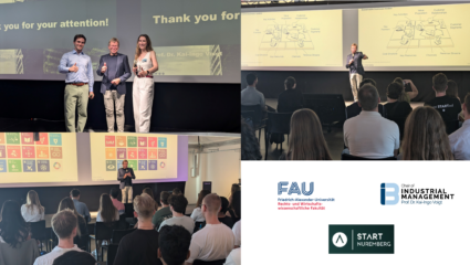 On 25.06.2024 Prof. Voigt was very honored to give a keynote speech on the topic of “Sustainable Innovations and Business Models” at Zollhof in Nuremberg by invitation of the student initiative “START”. The aim of the initiative is to connect start-ups from the Nuremberg region and create synergies in order to play an active role in the regional and national ecosystem. Right at the beginning of the event “scale up”, Prof. Voigt introduced the concept of sustainable innovations and provided a brief classification of different types among them. Sustainable innovations are not limited to products – innovating for a more sustainable future can also be done through adjusting the business model. In particular, circular business models that are cycling, extending, intensifying, or dematerializing material and energy loops contribute positively to the SDGs. Finally, in the key takeaways, Prof. Voigt provided an outlook for the future in which he illustrated why companies need sustainable innovations to be successful in the future and ultimately why the entire planet will benefit from sustainable innovations in the long term. Prof. Voigt and the entire team would like to thank the “START” initiative and the great audience and are already looking forward to the next event!