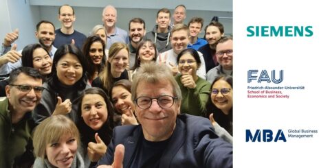 From November 18th to 22nd, the 11th class of the FAU-Siemens EMBA studies their module “Strategy” with Prof. Dr. Harald Hungenberg at FAU WiSo in Nuremberg. During this intensive week, the class of 2024-2026 will deepen their understanding of current developments in this field. In this module, we again welcomed highly valued guest speakers from Siemens, including Christoph Naumann, Head of Portfolio Development & Strategic Planning, and Denise Loeder, Head of Corporate Strategic Planning and Portfolio.